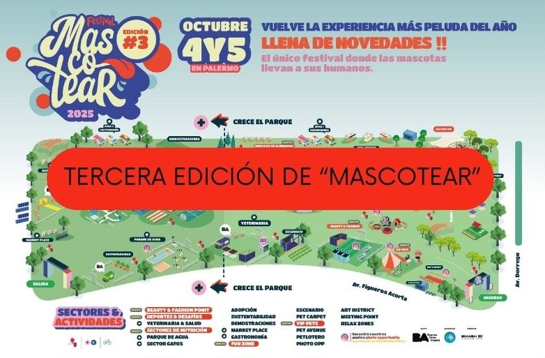 El festival se realizará en Av. Figueroa Alcorta y Dorrego, barrio de Palermo, el 4 y 5 de octubre de 2025, de 11 a 19 horas, podrás sacar tu entrada ingresando en www.festivalmascotear.com